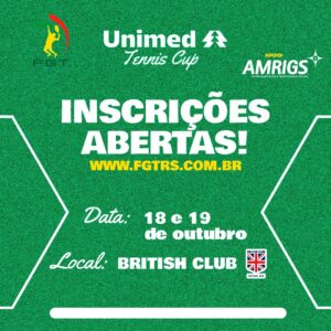 Estão abertas as inscrições para a Unimed Tennis Cup, torneio chancelado pela Federação Gaúcha de Tênis, exclusivo para médicos e médicas. E o cenário escolhido não poderia ser mais simbólico: o British Club, um dos quatro clubes fundadores da FGT.