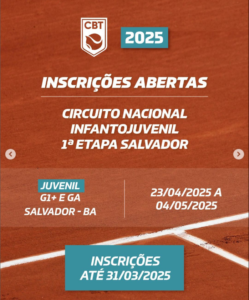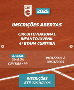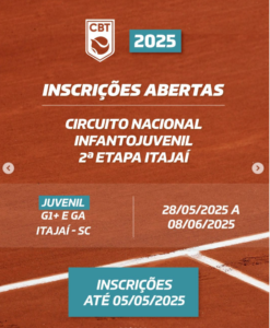 As competições acontecem de abril a novembro em diferentes cidades e estados. Confira os torneios com inscrições abertas no site da CBT.